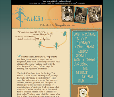 The Alert website describes how this programme supports children, teachers, parents, and therapists to choose appropriate strategies to change or maintain states of alertness so students can attain an optimal state of alertness for their tasks.