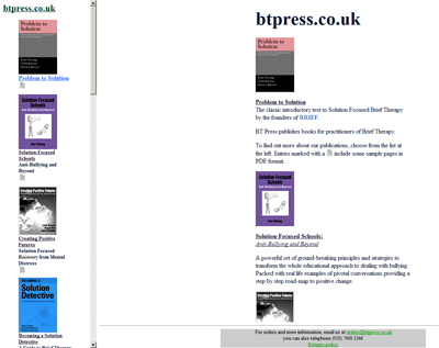 BTPress publishes texts on the Solution Focused approach. Publications can be purchased online on this web-site.