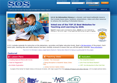A project of the Center for Digital Literacy at Syracuse University: S.O.S. for Information Literacy is a web-based multimedia resource that includes lesson plans, handouts, presentations, videos and other resources to enhance the teaching of information literacy. Information literacy skills enable students to effectively locate, organise, evaluate, manage and use information.