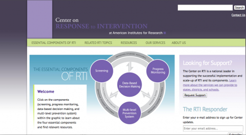The Center on Response to Intervention website provides information and resources on the Response to Intervention (RtI) approach that integrates assessment and intervention within a multi‐level prevention system to maximise student achievement and reduce behaviour problems.