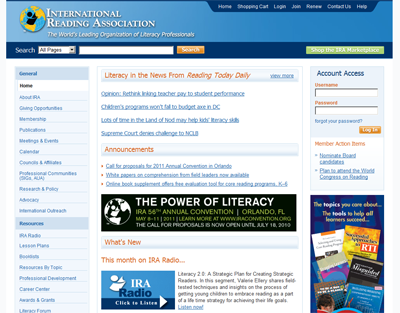 International Reading Association is a world-wide organisation concerned with improving reading. It publishes journals, and encourages effective teacher education and research.