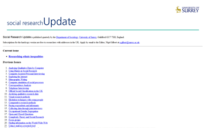 Social Research Update is published quarterly by the Department of Sociology, University of Surrey and presents online a range of articles on different aspects of doing research in the Social Sciences.