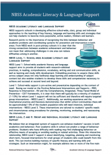 NBSS supports schools in developing effective school-wide, class, group and individual approaches to the teaching of key literacy, language and learning skills and strategies that can help students to become more purposeful, active readers, thinkers and learners. This document provides an overview of this support.